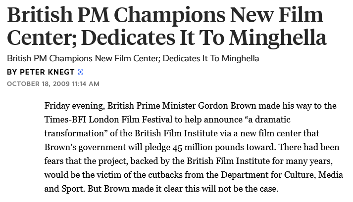 When David Cameron and George Osborne took power in 2010, they sold ‘austerity’ to the British public (and a surprising number of economists). Cutting into the bone of an already ailing post-crash economy did untold and lasting harm to the UK, and literally took lives, so the withdrawal of funds for new premises for the BFI seems relatively insignificant.